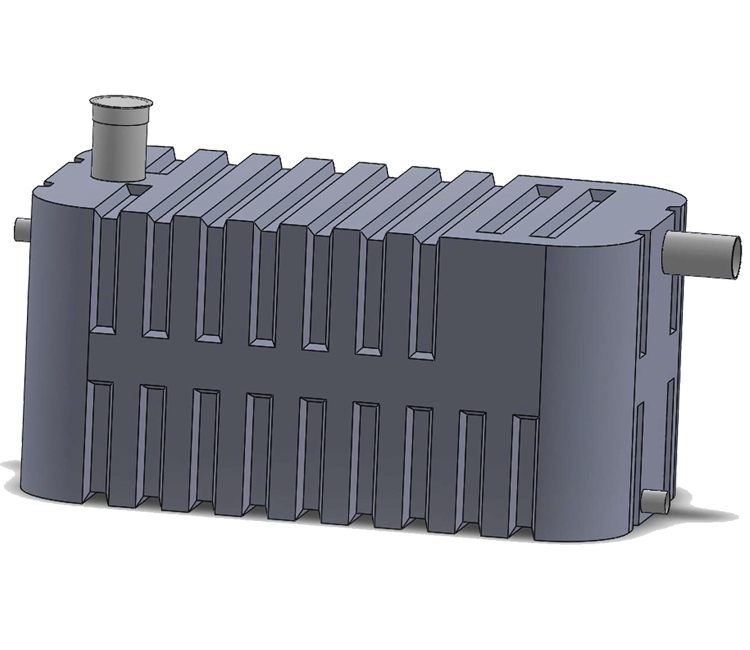 Las divisiones interiores o mamparas (#2) realizán la separación de los desechos sólidos y permiten el flujo del líquido para evitar que se mezclen entre ellos,posteriormente el líquido pasa por el Filtro Geotextil - Mineral (#3) para retener cualquier particula restante y evitar que llegue a la salida (#4), de esta forma el líquido estara libre de sedimentos, biodigerido y clarificado.